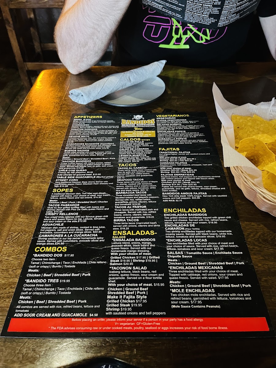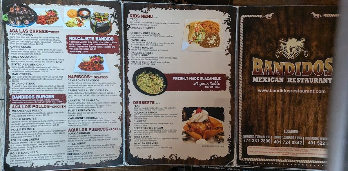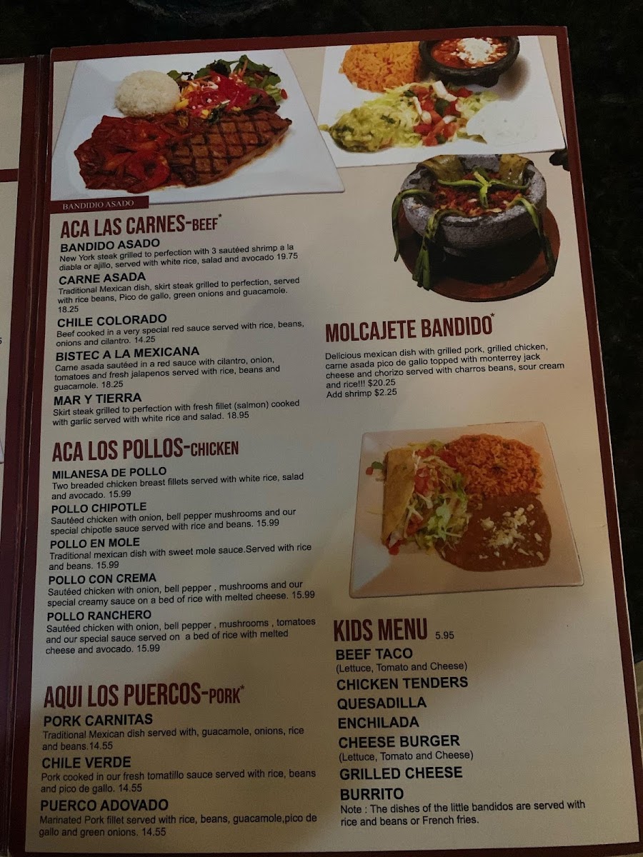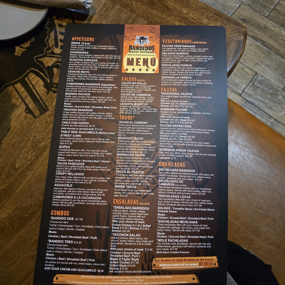 Sautéed bell pepper, onions, mushroom covered with melted cheese and bacon on the top. Fajitas are served with charro beans, sour cream, cheese, guacamole, lettuce, pico de gallo and tortillas. Shrimp comes with shell on.